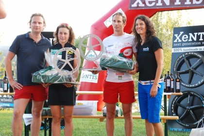 (Miachael König Präsident STTRV, Siegerin Romana Slavinec, Sieger Christian Birngruber, Sonja Kresch GF Xentis)